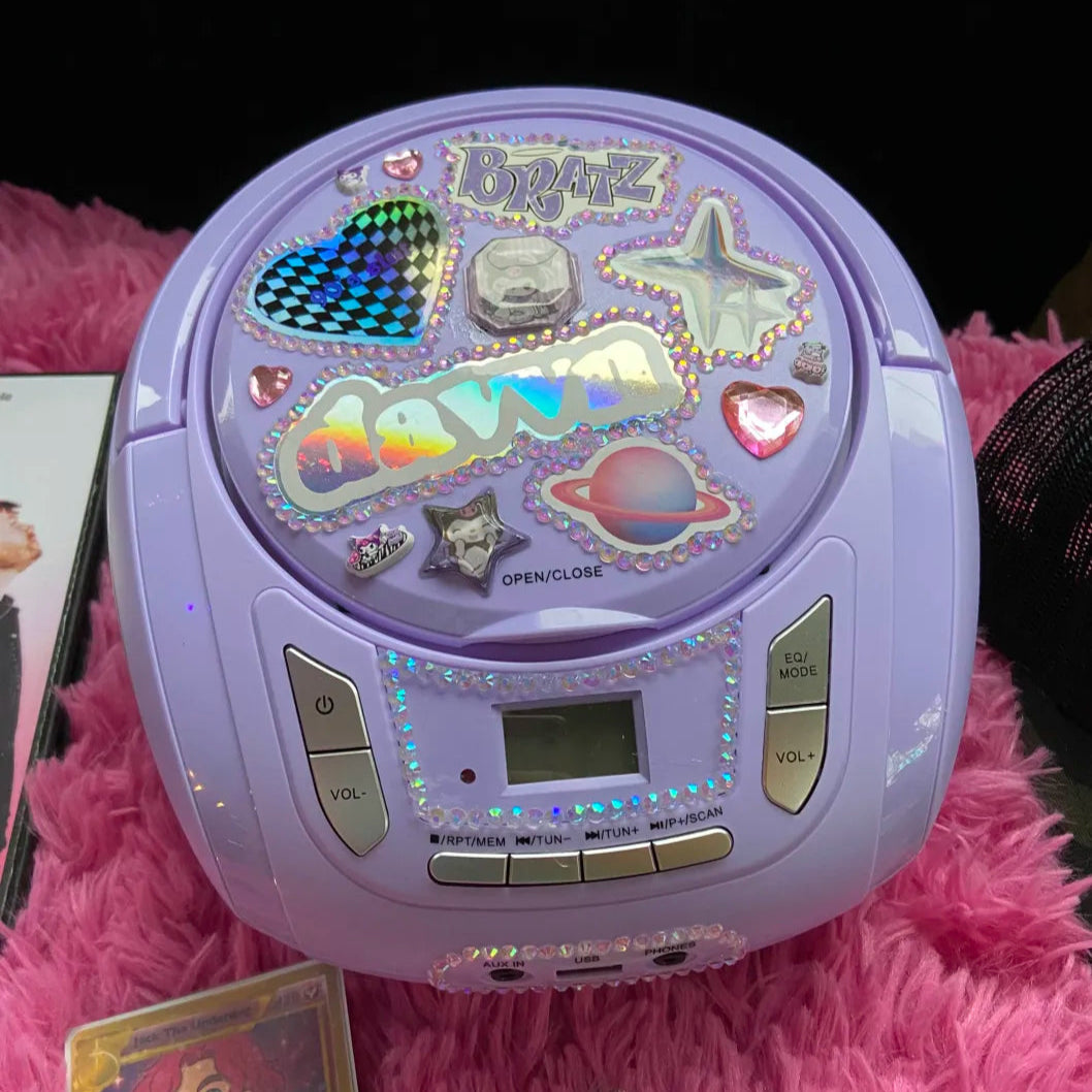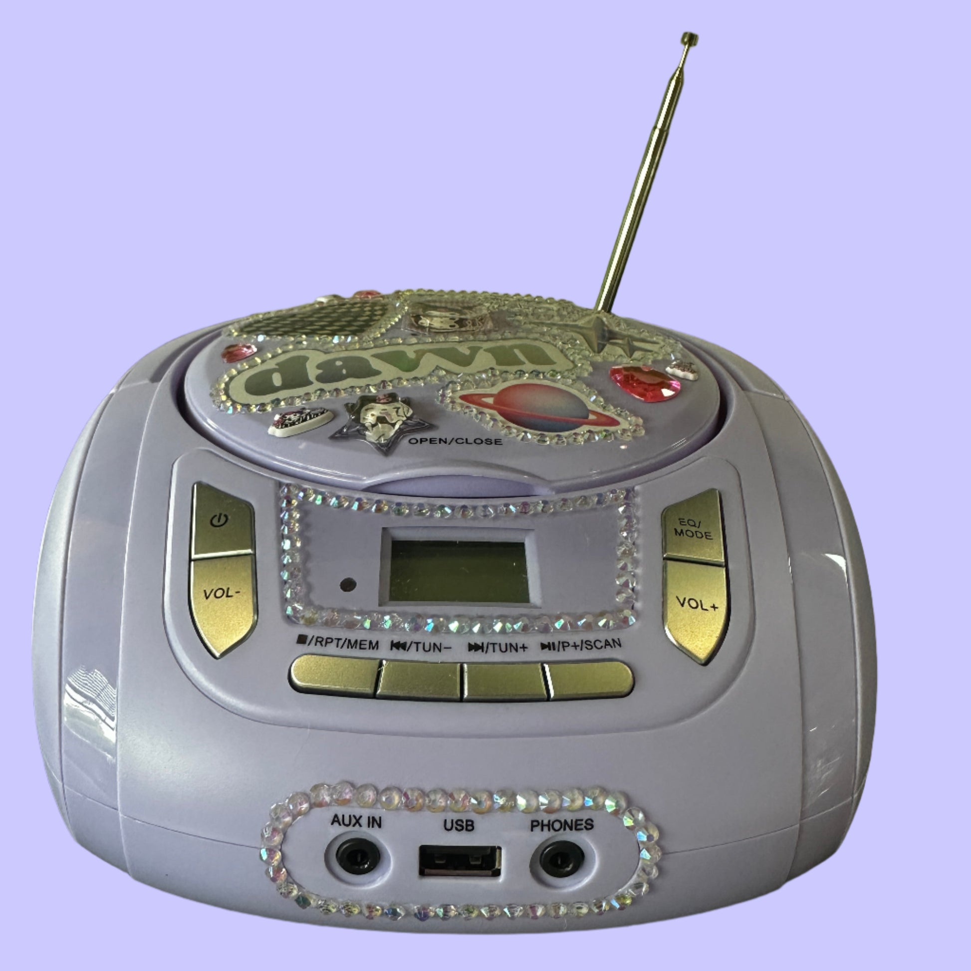 Okay, stop what you’re doin’ and feast your eyes on the most iconic piece of 2000s nostalgia since frosted lip gloss and AIM away messages. This ain’t just any old CD player – it’s the official TIME TRAVEL MACHINE that lit up the stage on davvn’s tour. One-of-a-kind, totally tricked-out, and hand-decorated with real Y2K flair by the band themselves (stickers, rhinestones, and angst included).
